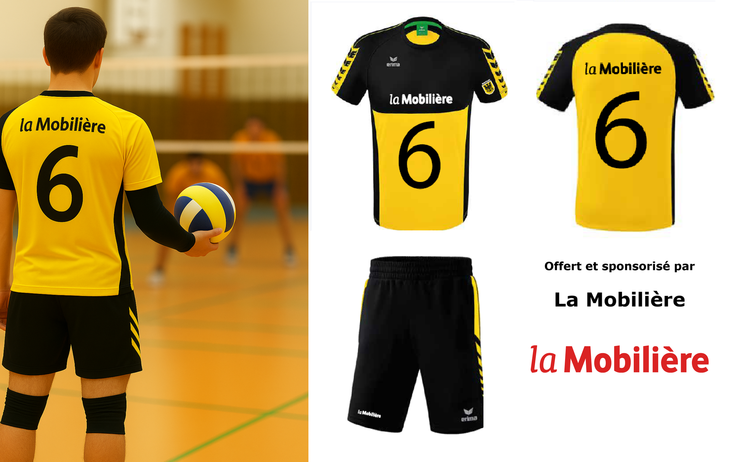 LA MOBILIÈRE est le parrain officiel et exclusif de l'équipement de l'Équipe 1 (H1) de la Gym Volley Châtel.